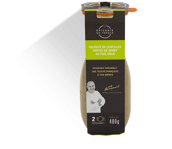 « Mon astuce : variez les textures ! Ce velouté aux lentilles vertes du Berry et foie gras mérite une touche croquante pour révéler toutes ses saveurs »